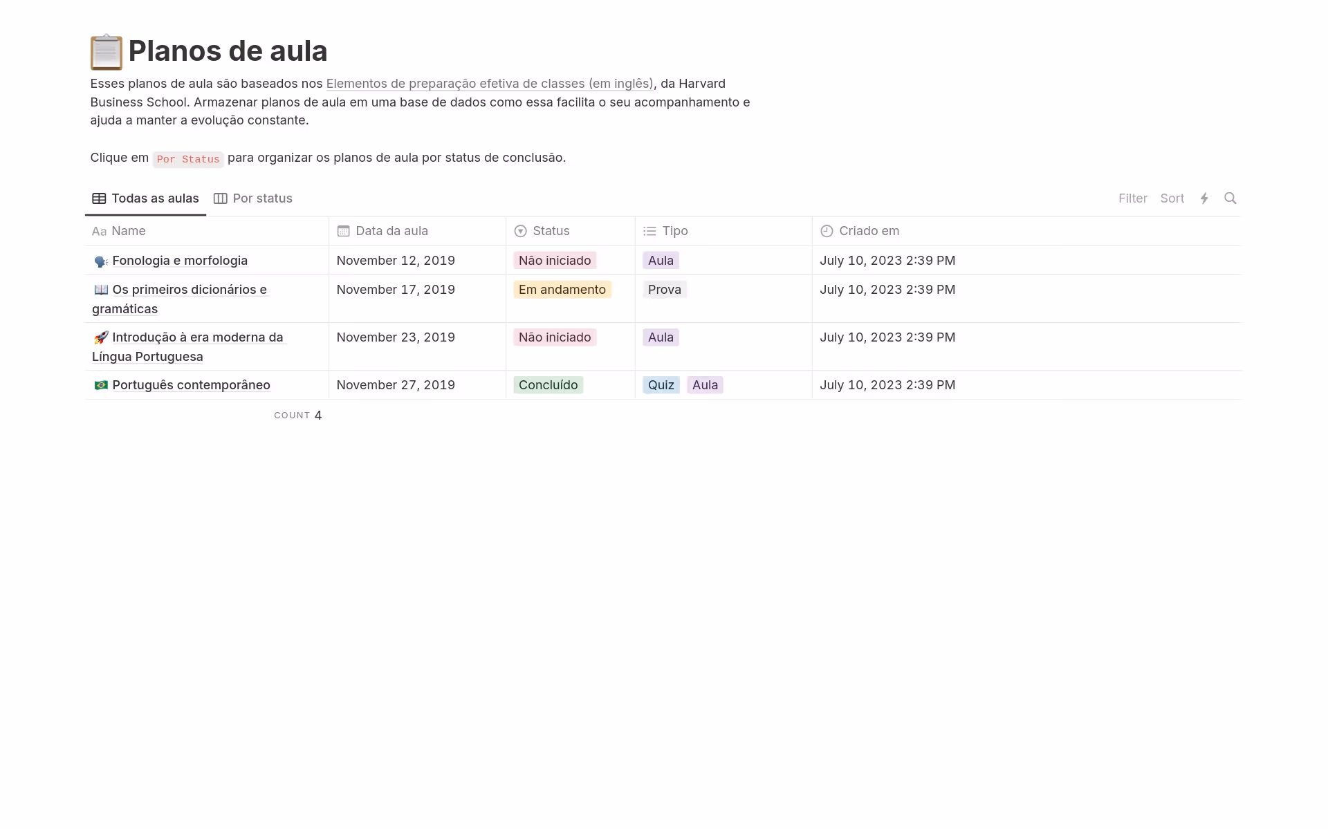 Planejamento de aulas